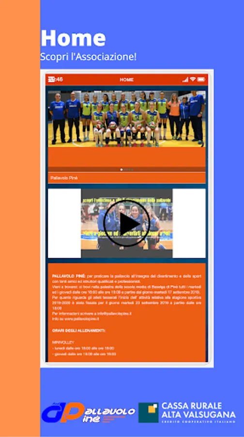 Come and visit us: find us in the gym of the Baselga di Pinè middle school every Tuesday and Thursday from 18:00 to 19:00 starting Tuesday 17 September 2019.