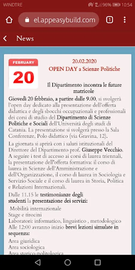 The App also contains a contact section and a rich gallery, a collection of videos and news, all links to the official pages of the Department. To move confidently in the choice of your course of study, and to be constantly updated on news, events and opportunities