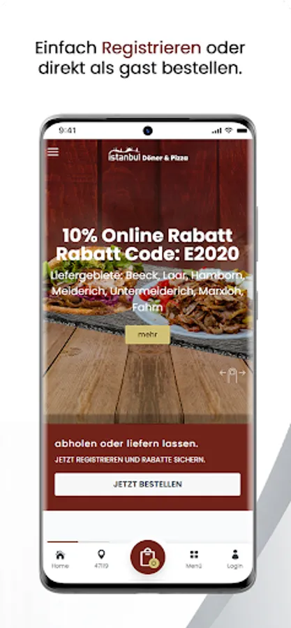 You too can download our app and register free of charge for valuable and fast food to your home!