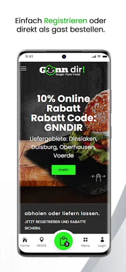 You too can download our app and register free of charge for valuable and fast food to your home!