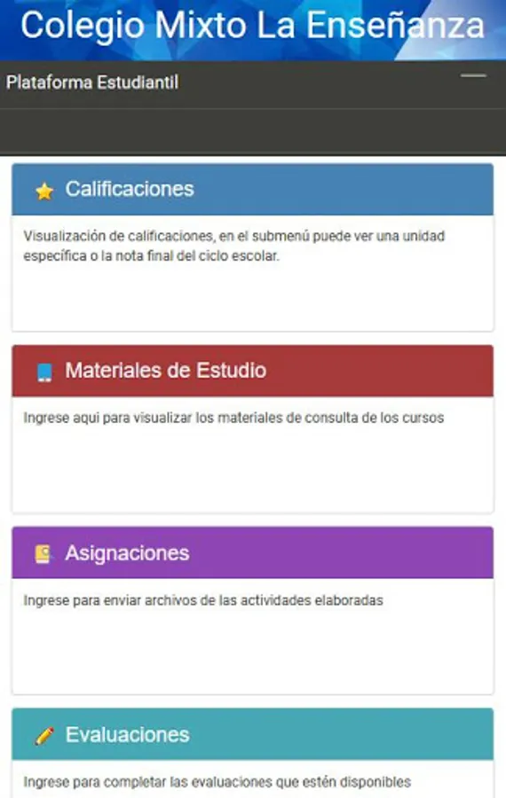 Our APP provides access to information services for Students and Parents of Colegio La Enseñanza based in zone 11 of Guatemala.