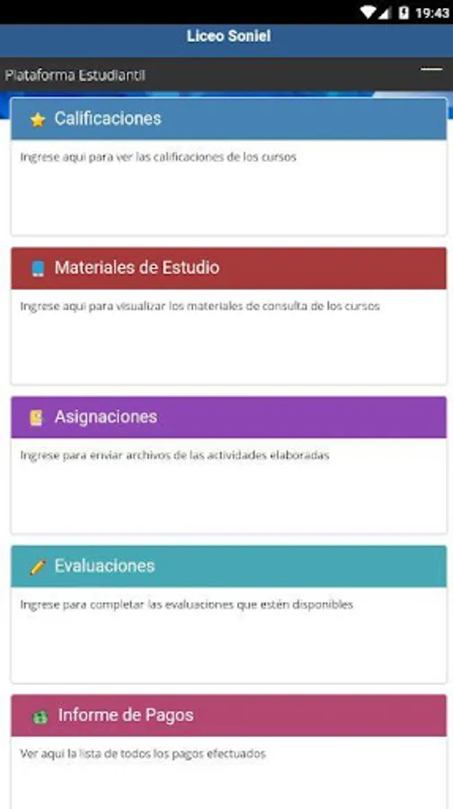 Liceo Soniel, provides access to the information services of qualifications, duties, payments and assistance for students and parents of the Liceo Soniel located in 4av. 2-78 Barrio San Juan, Amatitlán, Guatemala.