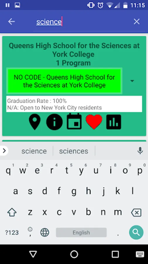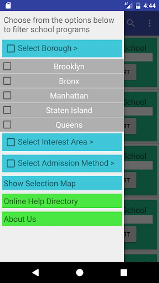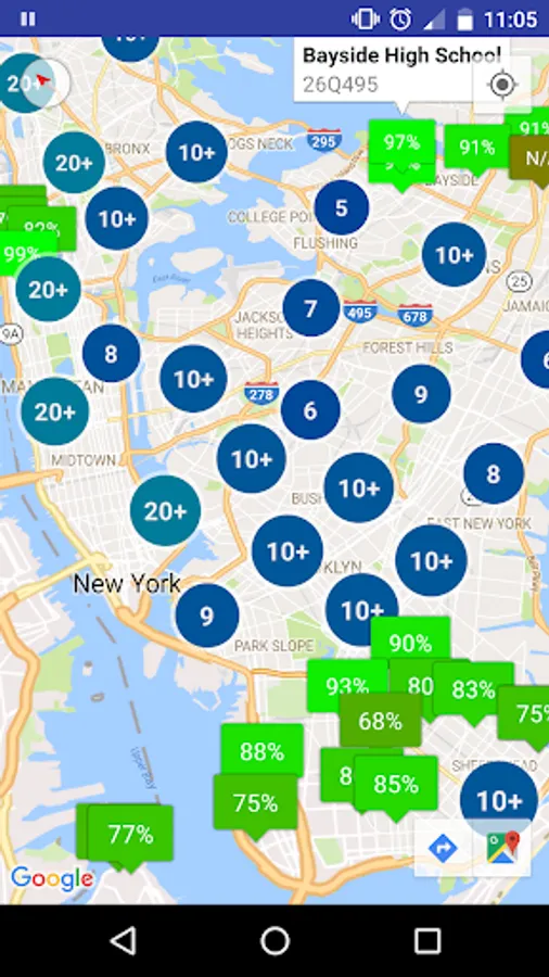 The app allows parents to choose a High School in NYC based on your location and interests. You can see a map of all the high schools in NYC or just the ones you filtered. The markers on the map show graduation rates and are also color coded. Clicking a marker gives you the school name and DBN and options for navigation. Clicking on the school name gives you more information about the school to contact them by phone or email. You can also copy the information and share it with friends. High Schools in NYC have different programs and you need to apply to a specific program within the school. The app has a link to an online version of the HS Directory that explains the meaning behind the different admission methods. If you are still confused talk to your guidance counselor or call the High School and set up an appointment.