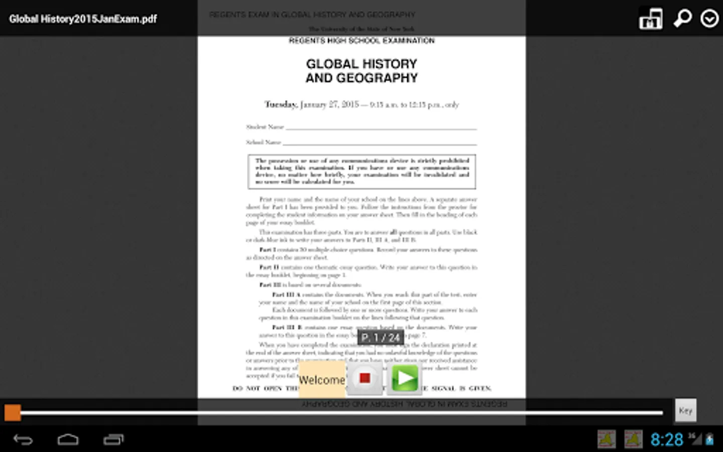 2018 Regents Exams are now available in the paid App. Practice NY Regents Exams including Common core Math Algebra, Geometry, Trig, English, Global History, US History, Living Environment, Earth Science, Chemistry, and physics. The latest regents practice questions are now available in the paid App. The App downloads publicly available PDF files of Regents Exams and allows the student to organize them and practice them on their portable devices. Please, pardon the appearance of the app we still need to hire a designer. This app does not do any magic. Don't download it the last week before the regents and expect a miracle. This is a free trial with no Ads. If you find it useful, please support us by getting the paid version that has more features.