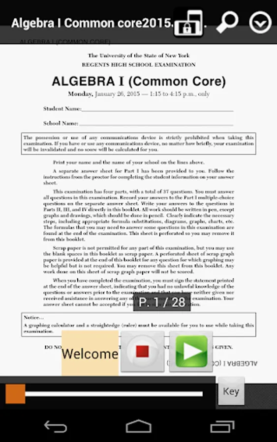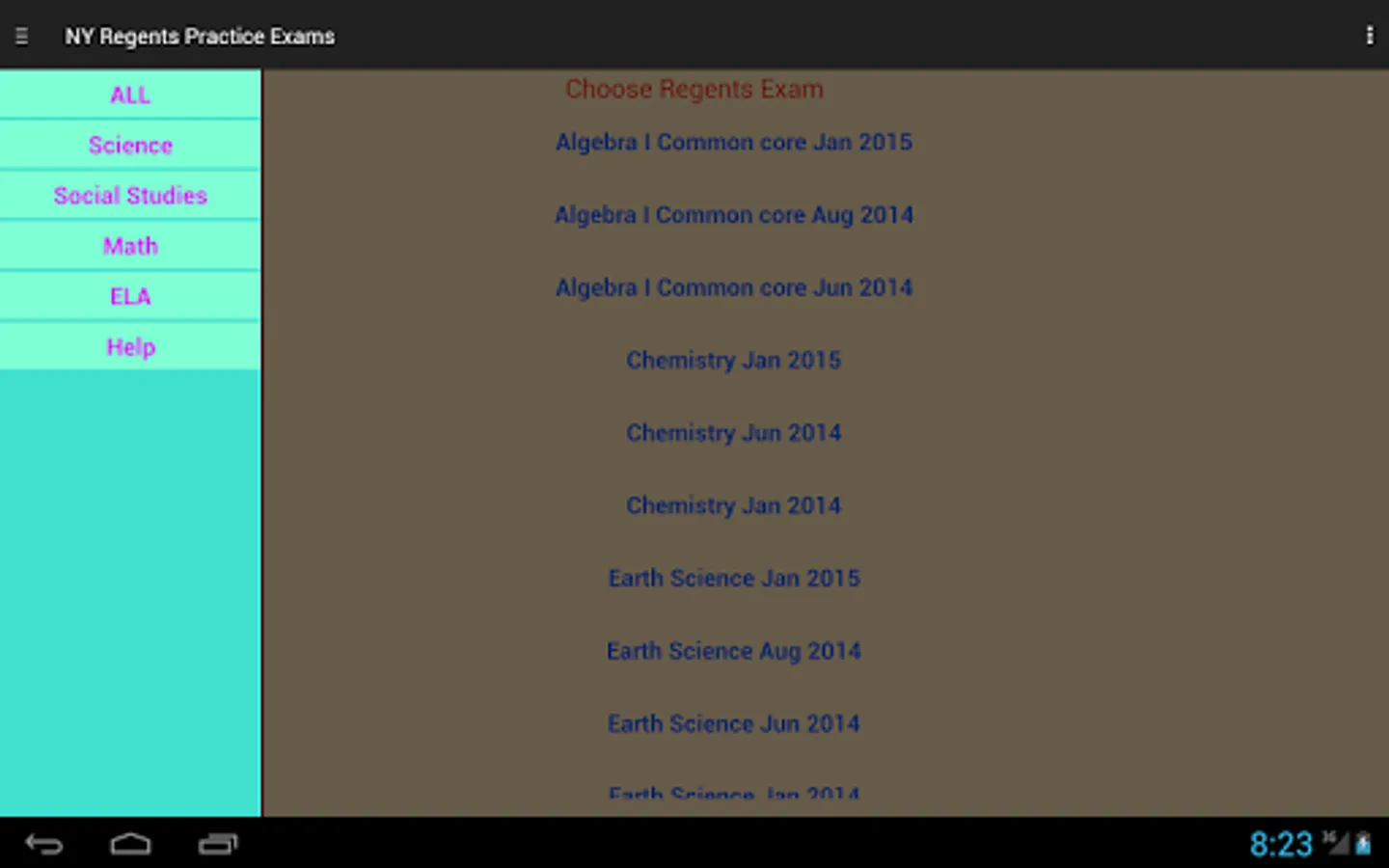Practice NY Regents Exams including Common core Math Algebra, Geometry, Trig, English, Global History, US History, Living Environment, Earth Science, Chemistry, and physics. The App downloads publicly available PDF files of Regents Exams and allows the student to organize them and practice them on their portable devices. Please, pardon the appearance of the app we still need to hire a designer. If we get enough support from the community we will add more features. This app does not do any magic. Don't download it the last week before the regents and expect a miracle.