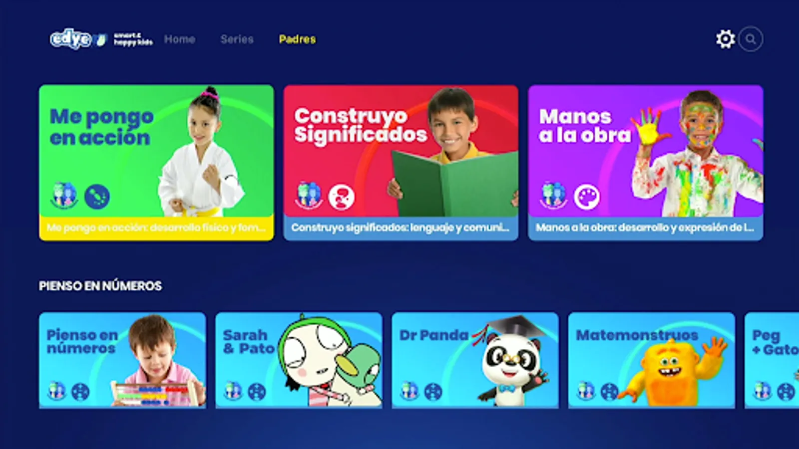 Con EDYE, tus pequeños disfrutarán de las series y personajes más queridos por los niños, Con contenidos especialmente seleccionados en colaboración con los productores de series preescolares más importantes del mundo. Comienza a disfrutar Edye, con más de 70 series preescolares, 2,500+ episodios, juegos, actividades, y más de 70 guías para padres.
