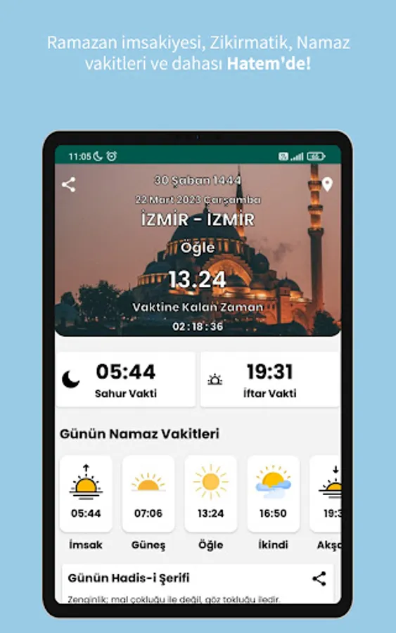 It is a feature that allows you to easily access all these details at what time the evening prayer, afternoon prayer, morning prayer, night prayer and morning prayer are read.