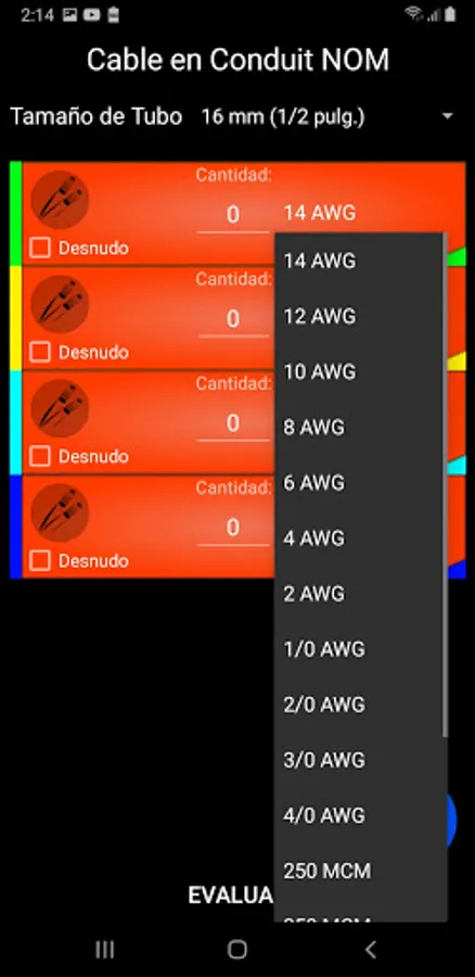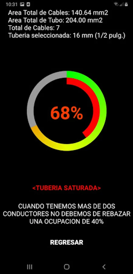 Calculator to determine the space to occupy within a conduit pipe according to "TABLE 4. Dimensions and percentage available for conductors in the area of the conduit tube NOM-001-SEDE-2012"