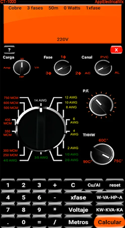 For a calculation with conductors from 14 AWG to 750 MCM complete download "Voltage Drop NOM Pro".