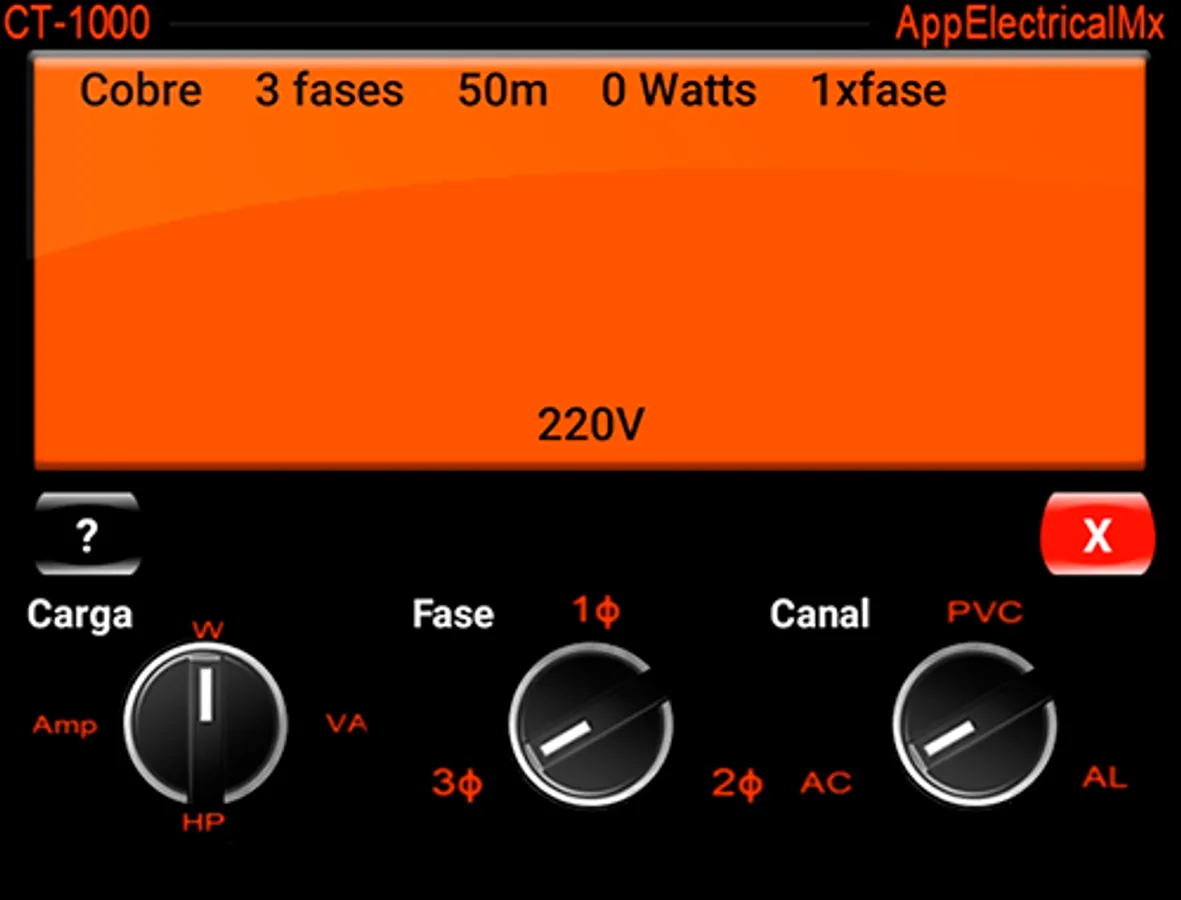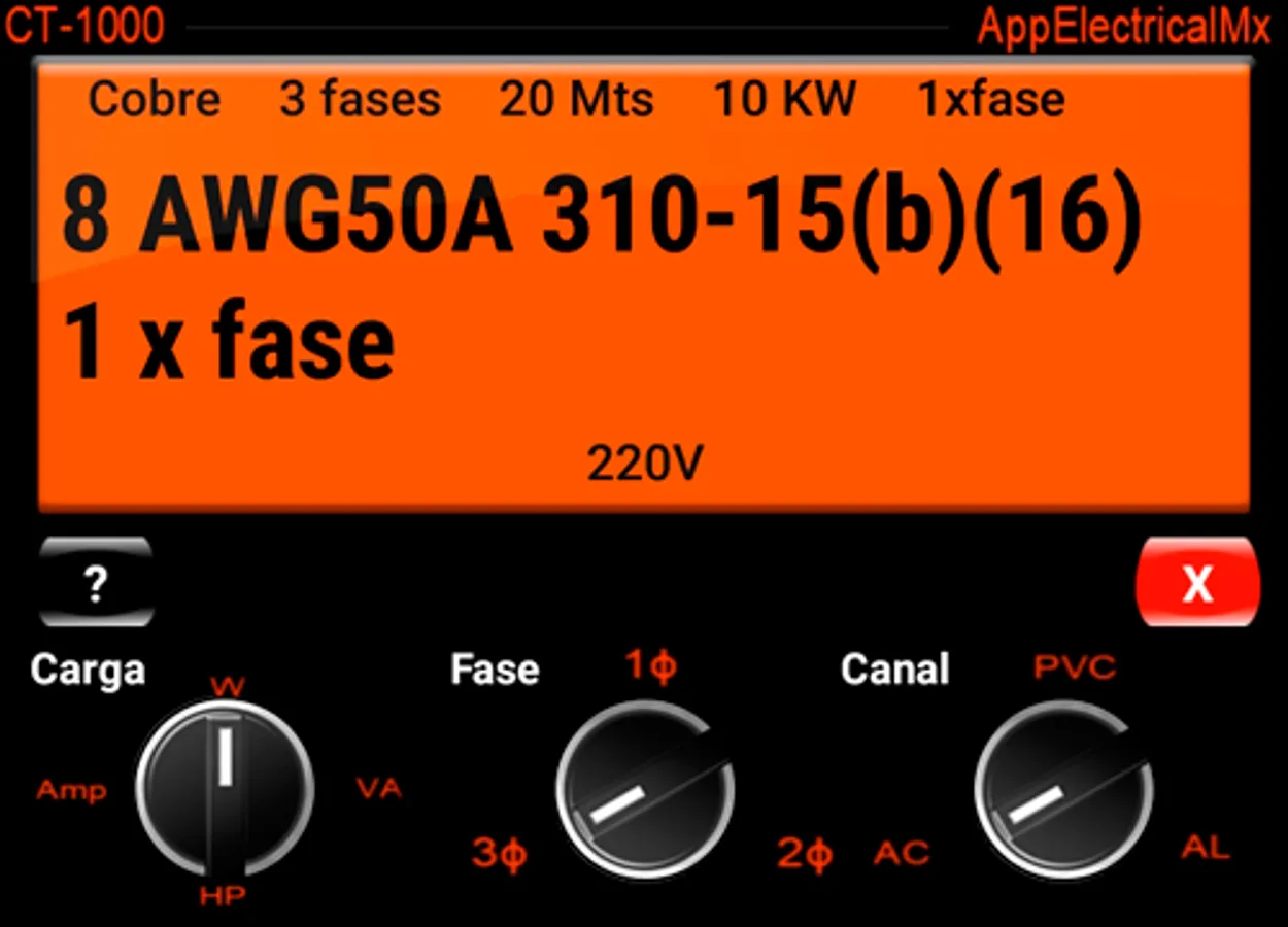 Calculator designed for the calculation of voltage drop, based on the tables of current capacity per conductor 310-15 (b) (16), of the NOM-001 SEDE 2012.