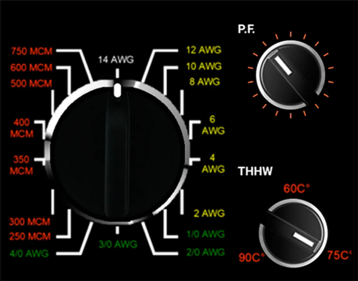 - Calculation in conductors from gauge # 14 awg to 750 MCM.