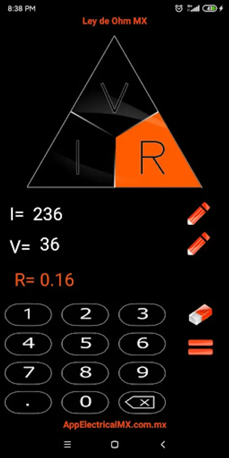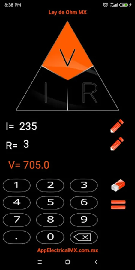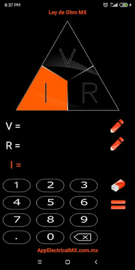 Calculator with the formulas of the Ohm's Law useful for the electronic technicians very easy to use the functions of the Ohm's Law are the following: