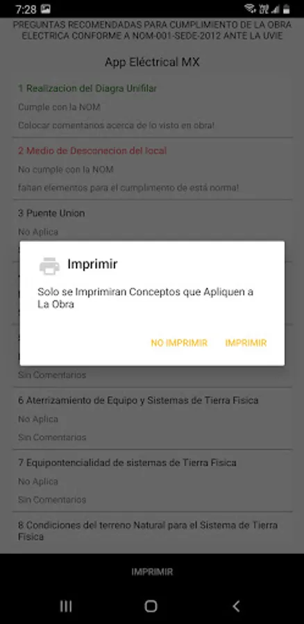 It is worth mentioning that this application is a guide for the review of an electrical installation, it does not in any way exempt the review of an expert registered with SENER and he is the only one who will be able to decide if the electrical work complies with the NOM and issue a UVIE.