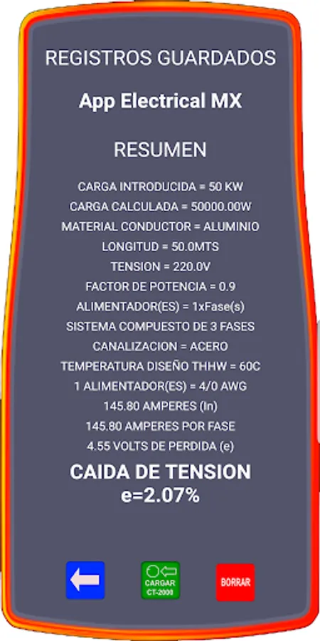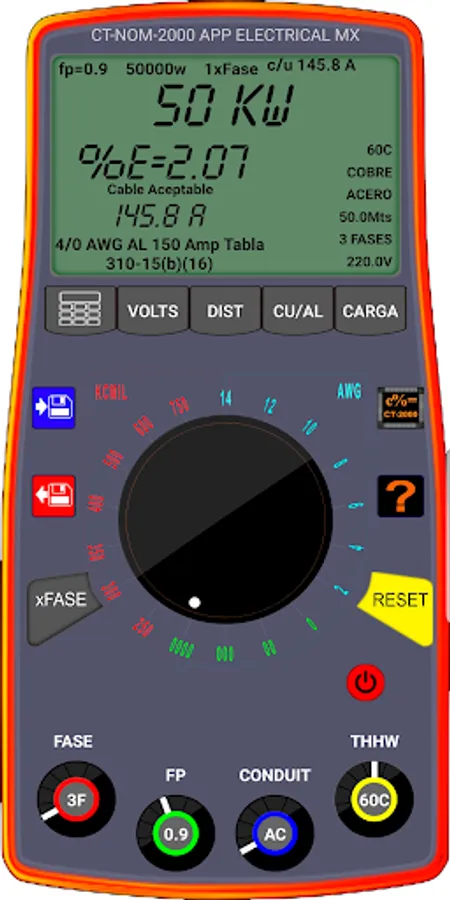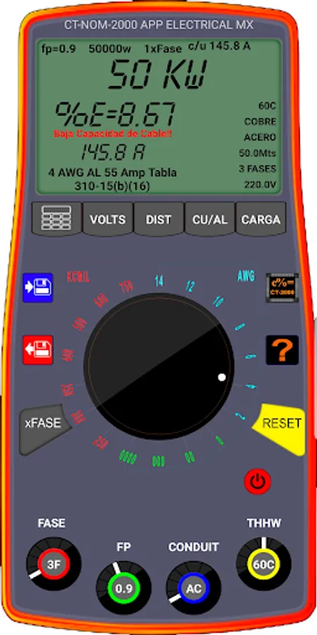 The calculations made with the "Voltage Drop NOM PRO 2" CT-2000 calculator do not replace a calculation memory performed by an electrical engineer or electrical technician.