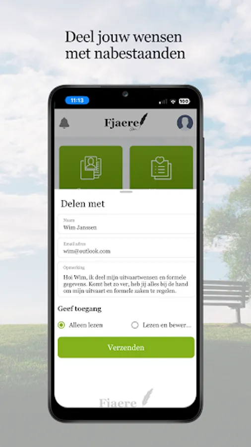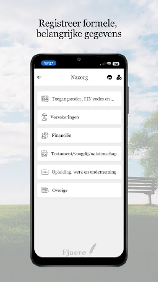Leg al jouw uitvaartwensen en gegevens vast voor jou en jouw nabestaanden met deze app. Fjaere brengt alles rond overlijden samen.