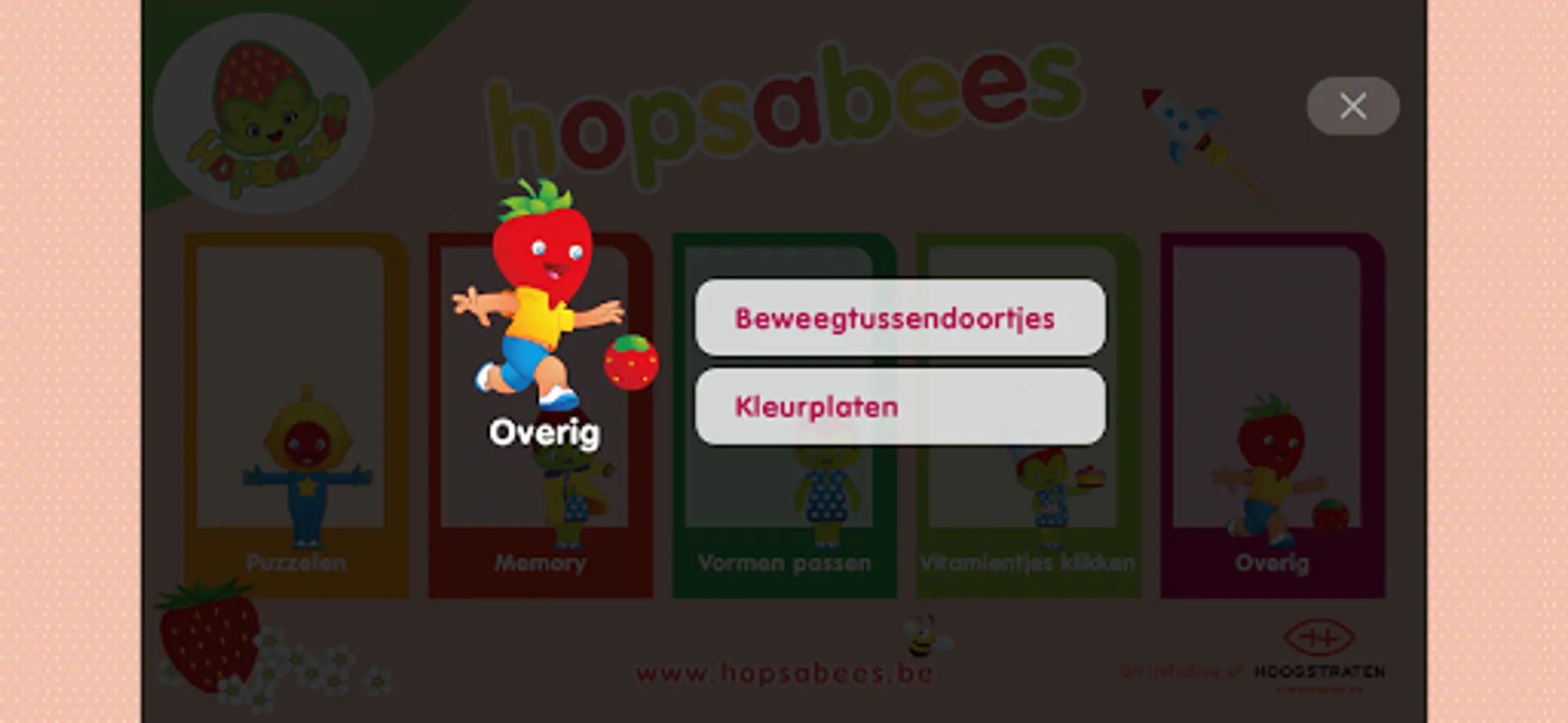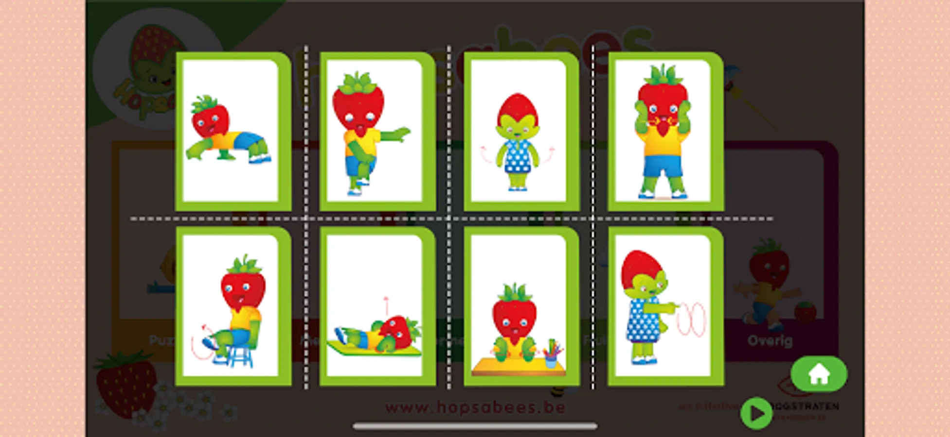 The Hopsabees app is a nice addition to the package. Your toddler can work independently. Fit shapes, puzzle and of course the exercise snacks. That way you always have Hopsabees at hand!