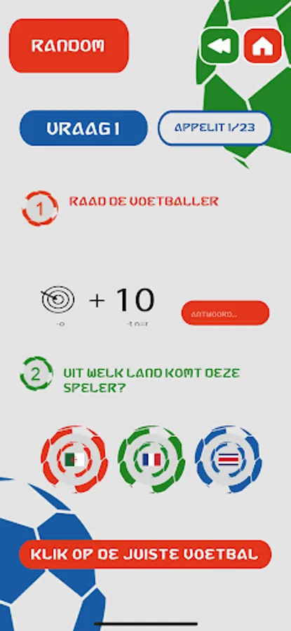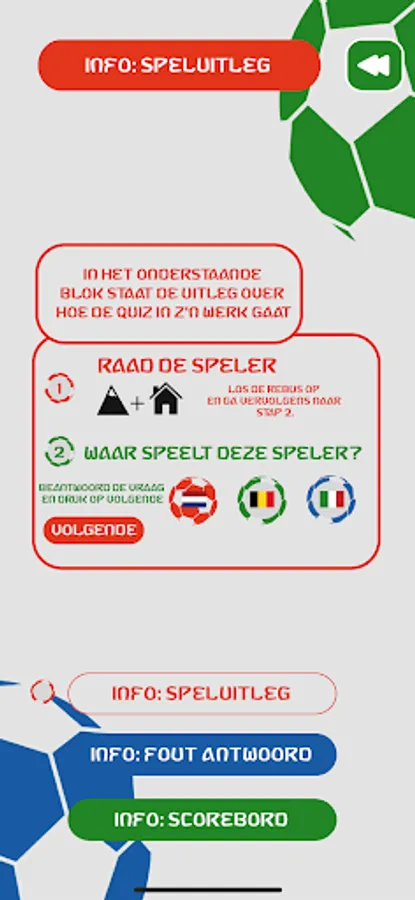 Bijvoorbeeld berg+huis is Steven Berghuis. Verder komen Kylian Mbappe, Lionel Messi natuurlijk ook voor bij. Zo gaan we heel Europa door met verschillende rebussen. Deze zijn allemaal te vinden in verschillende levels op deze app.