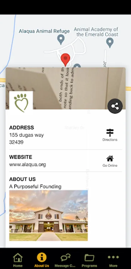 Alaqua Animal Refuge believes that every abused, neglected and homeless animal deserves a second chance. Our private, nonprofit animal sanctuary is committed to serving the Emerald Coast as: the premier no-kill refuge, providing protection, shelter and care to animals in need; a full-service animal adoption center; and a peaceful, proactive animal welfare advocate through educational outreach and community programs.