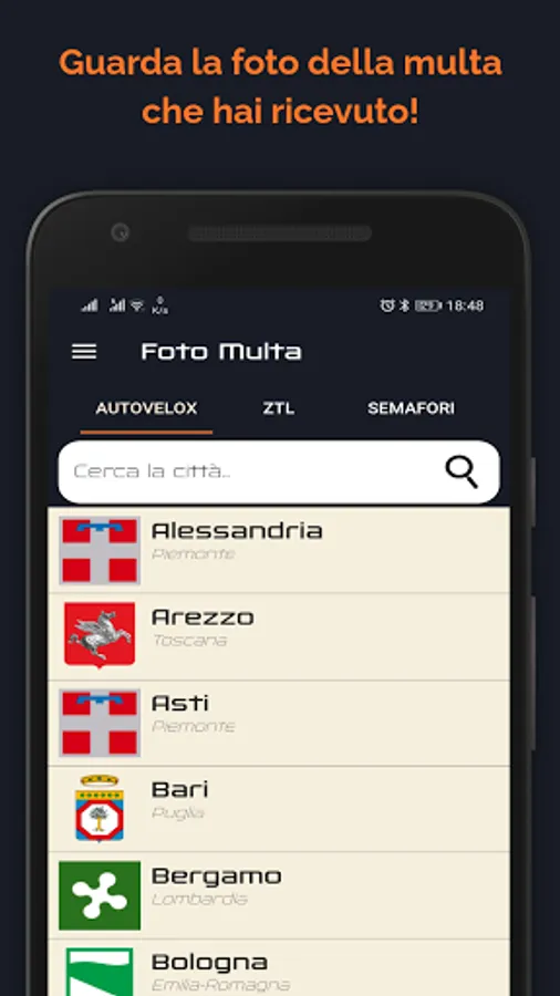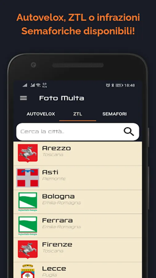 AUTOVELOX: Alessandria, Arezzo, Asti, bari-bergamo, Bologna, Bolzano, Brescia, Cagliari, Cesena, Como, Cremona, Florence, Forlì, Genoa, Grosseto, Latina, Lecco, Livorno, Lodi, Mantua, Milan, Modena, Naples, Padua, Palermo, Parma, Pavia, Perugia, Pesaro, Pescara, Pisa, Pistoia, Prato, Ragusa, Ravenna, Reggio Emilia, Rieti, Rimini, Savona, Siena, Taranto, Terni, Turin, Trento, Treviso, Varese, Venice, Vercelli , Verona, Vicenza, Viterbo.