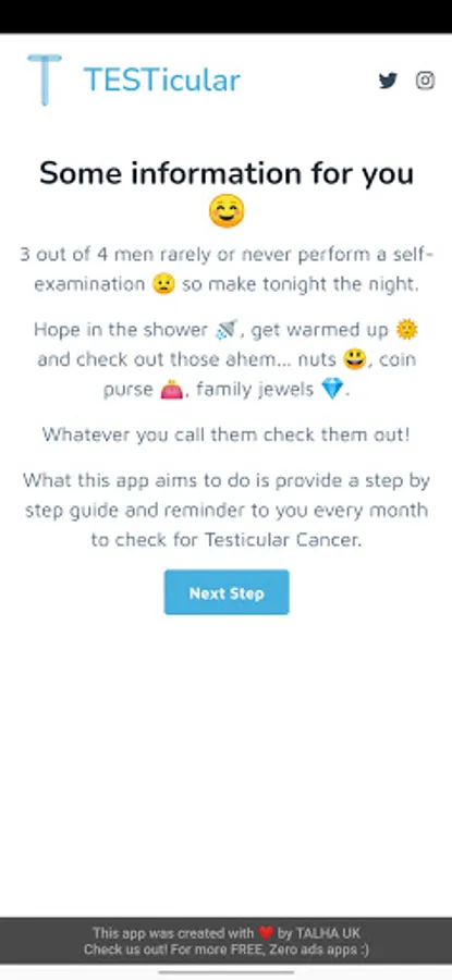 What this app aims to do is provide a step by step guide and reminder to you every month to check for Testicular Cancer.