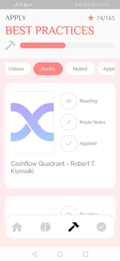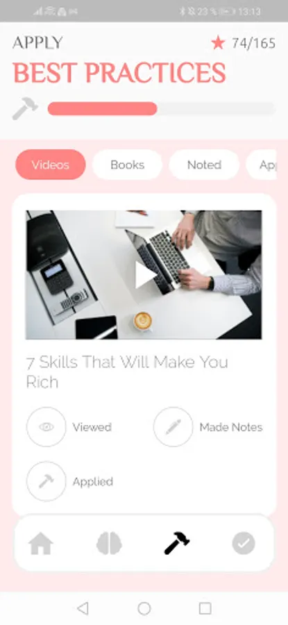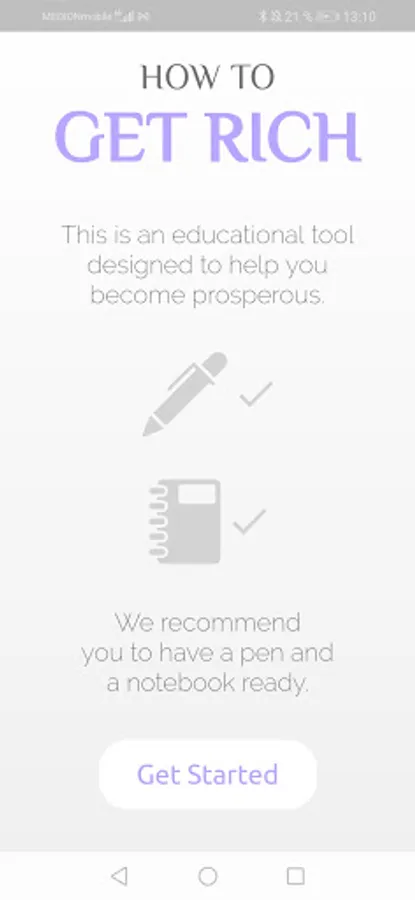 You should have a pen and a notebook ready to acquire and apply the knowledge provided in this app. This app is build like a game and therefore has a clever point system, which displays your learning and application process.