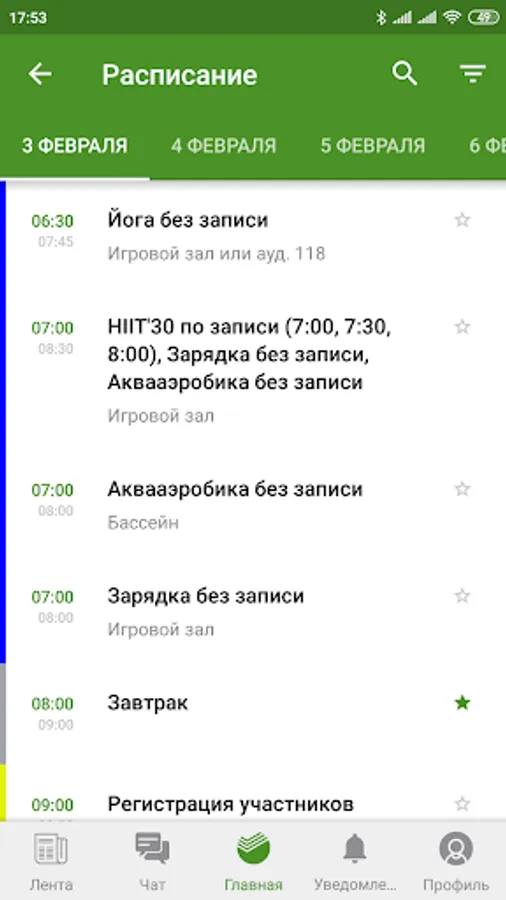 1. Schedule with the addition of favorites