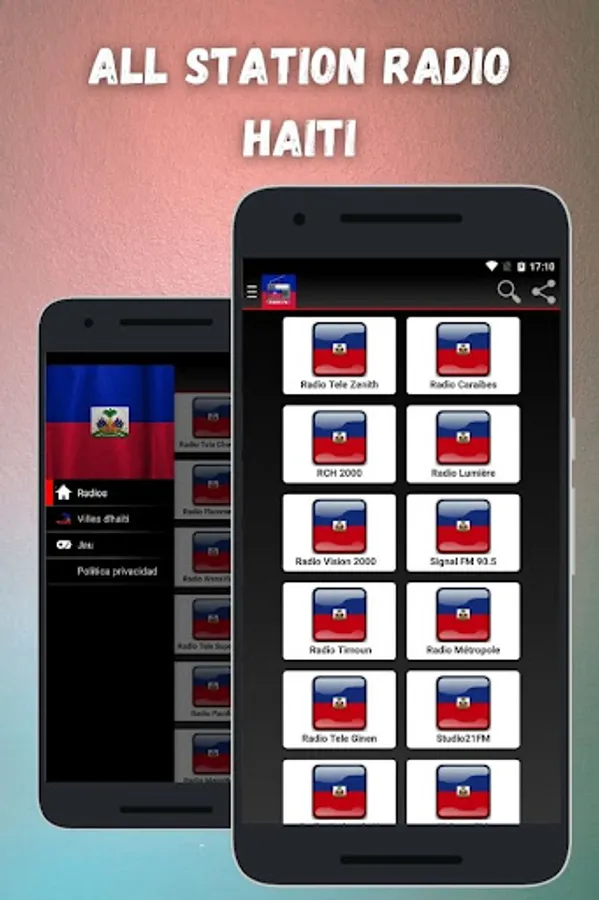 - Offers All Station Radio Haiti from the main cities of the country.