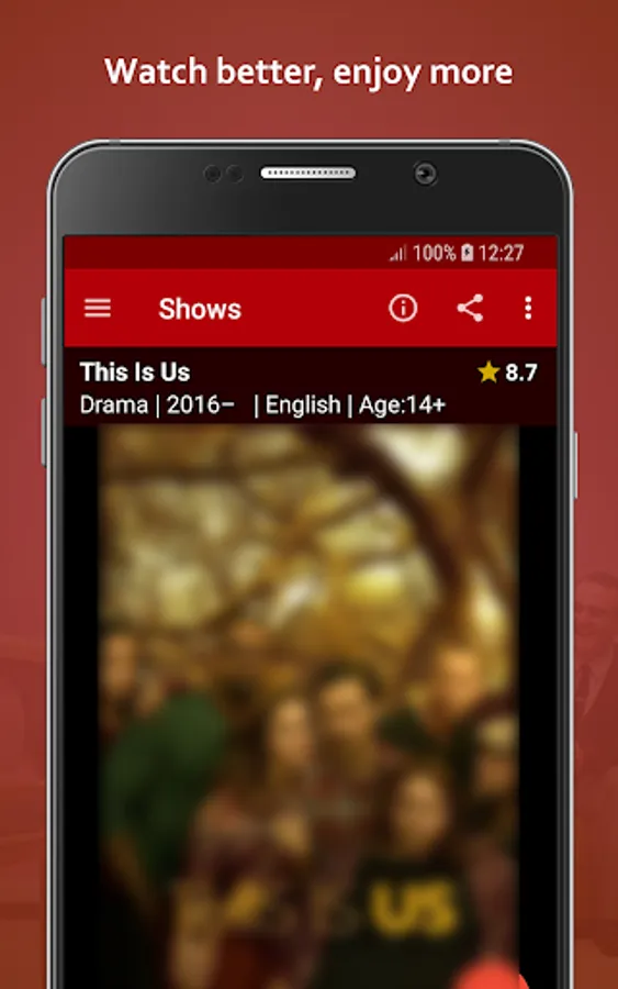 This is an entertainment app, providing top TV shows, trailers, TV series ratings, and more. Watch TV series online and discover TV shows that you haven't seen yet.