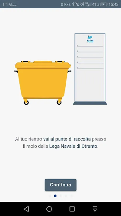 Upon returning to the port, you can clearly and unequivocally testify your ecological commitment to the benefit of the environment by taking a photo at the collection point located near the piers near the Naval and Assonautica League (port area). The collected material must be placed in the space provided next to the collector and take a photo with the "Plastic fishing" APP.