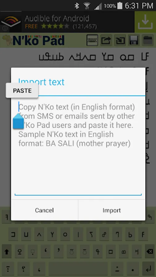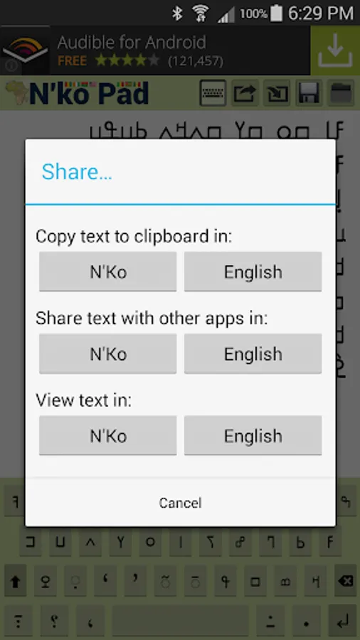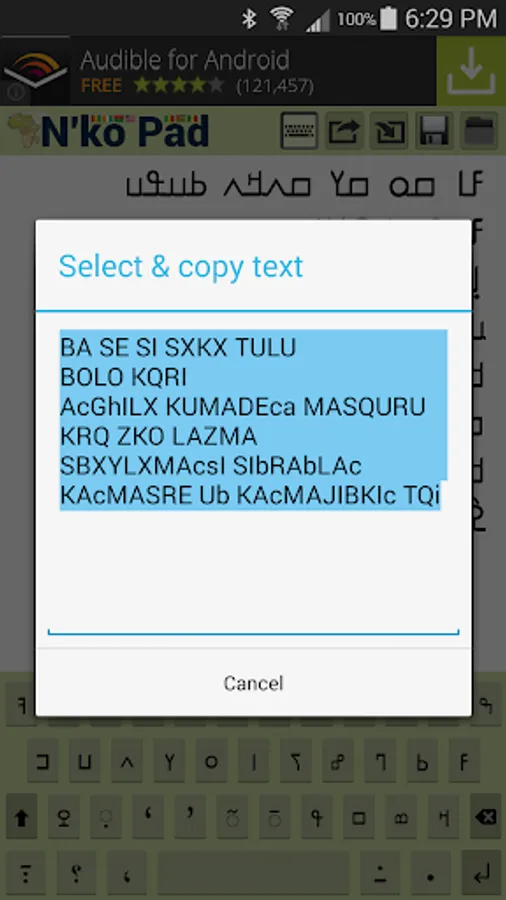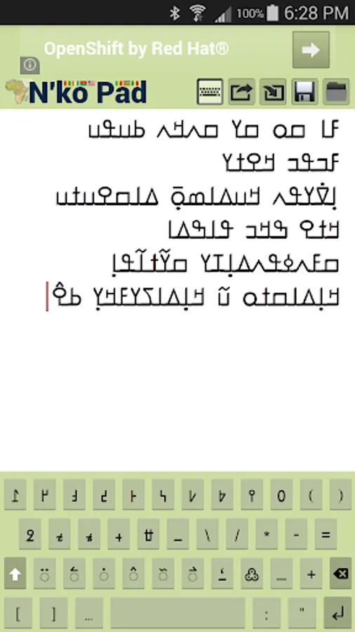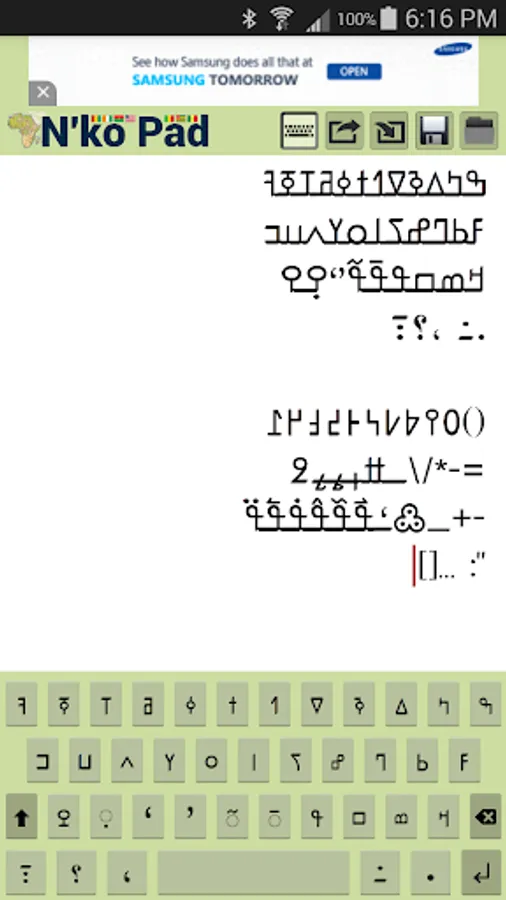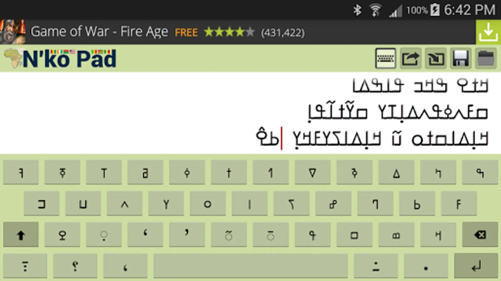 N'Ko Pad is Android's first text editor for N'Ko language, which is widely used in West Africa. N'Ko alphabets are not supported in Android, so this app uses font images to display the text!