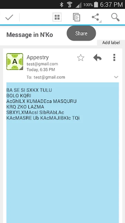 It converts the N'Ko text to English format when saving to a file or sharing with other apps. When you open the saved file it converts the text from English format back to N'Ko text. Similarly when you share or copy/paste text in English format from other apps into N'Ko Pad it converts them back to N'Ko text.