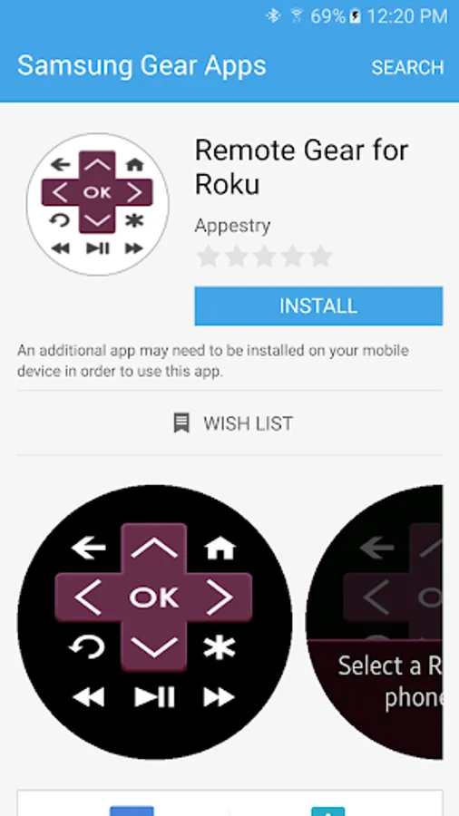 Remote Gear lets you control your Roku from your Samsung smartwatch! It connects your Roku and smartwatch through your mobile device. It consists of two parts - the phone app and the smartwatch app. In the phone app you can select which Roku device you want to control. You can control your Roku from both apps.