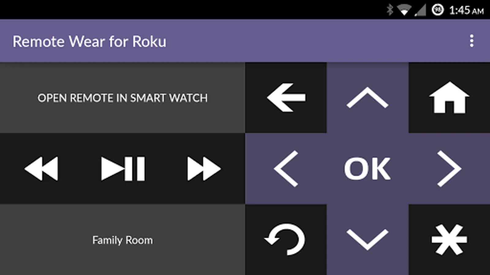 Remote Wear lets you control your Roku from your smartwatch! It connects your Roku and smartwatch through your mobile device. It consists of two parts - the phone app and the smartwatch app. In the phone app you can select which Roku device you want to control. You can control your Roku from both apps. You don't need a smartwatch to use the phone app.