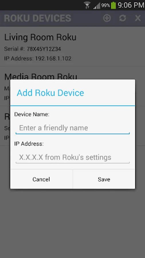 Install the R-Cast channel and R-Cast app in your Roku and Android devices respectively. Once you connect the devices to the same Wi-Fi network, this app will detect your Roku devices.