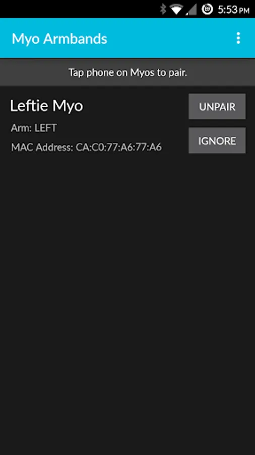 • Ignore and unpair individual Myo armbands from the armbands menu