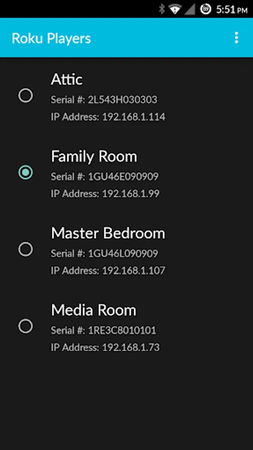 • Select the Roku player you want to control form the players menu