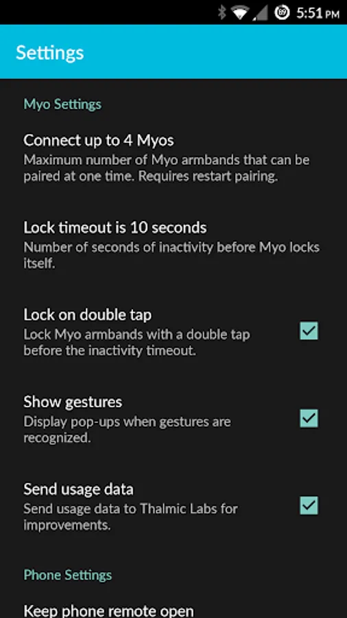 • Use the phone remote separately from the Myo armband