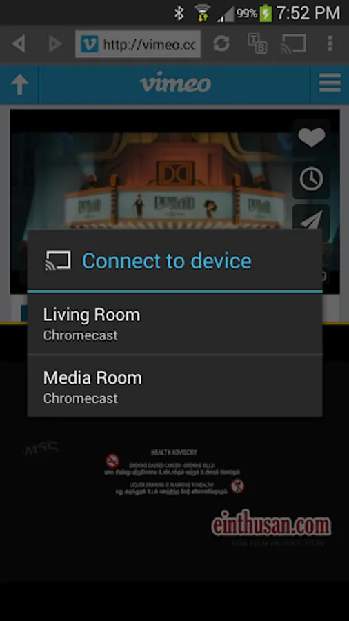 • When using Chromecast it displays the video playback status on TV screens.