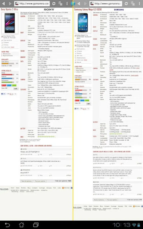 • Resize the two browser halves by dragging the yellow divider line.