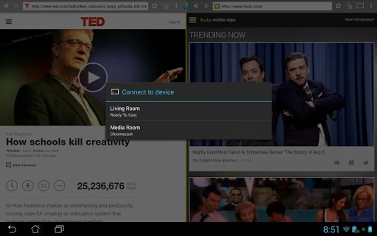 Cast videos to Chromecast & Nexus Player. Play videos from Split Browser on big screens!
