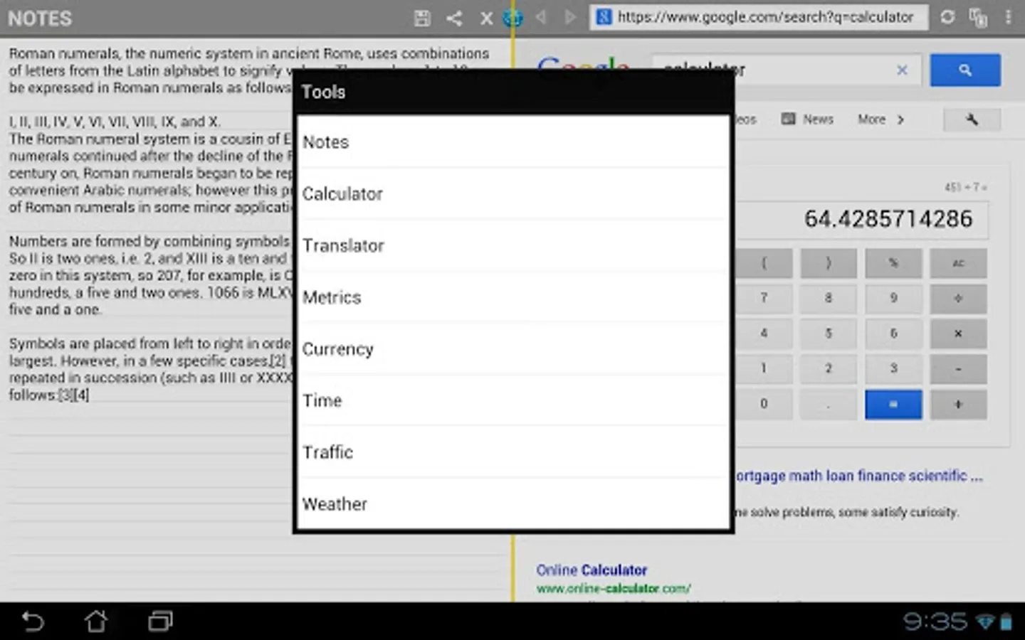 • Links to useful tools like calculator, translator, converters... etc.