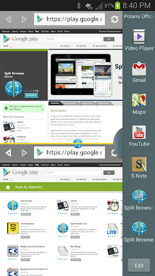 1/14/16 - SAMSUNG UPDATE: Split Browser now works in newer Samsung devices in multi-window mode.