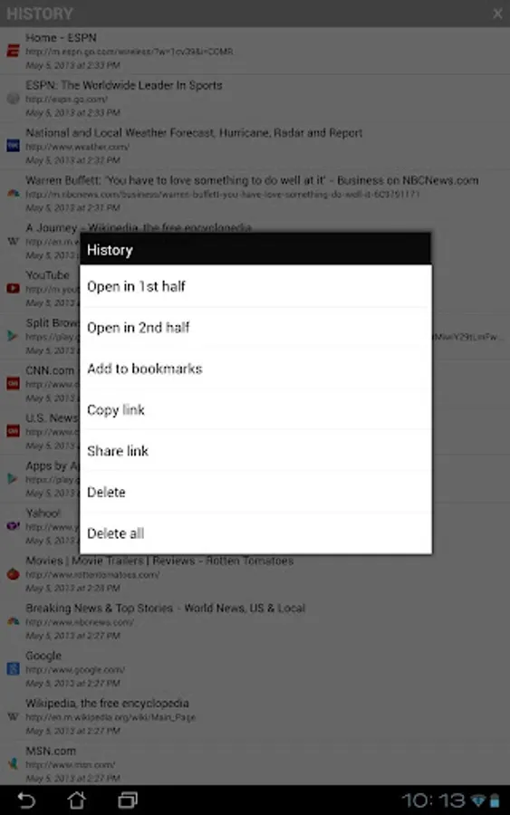 • Manage history across all tabs in one place, sorted reverse chronologically showing the time of last visit.