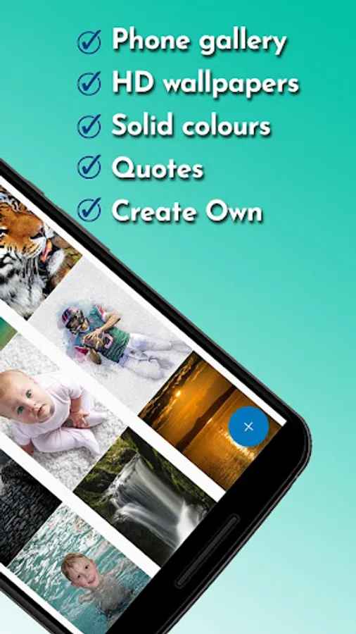 You can select wallpapers from the phone gallery, web, solid colors wallpapers, quotes wallpapers, take a new picture using camera or create your own wallpaper. You can crop the image to required dimensions or It will crop the selected image from center to best fit as wallpaper without affecting the original image.