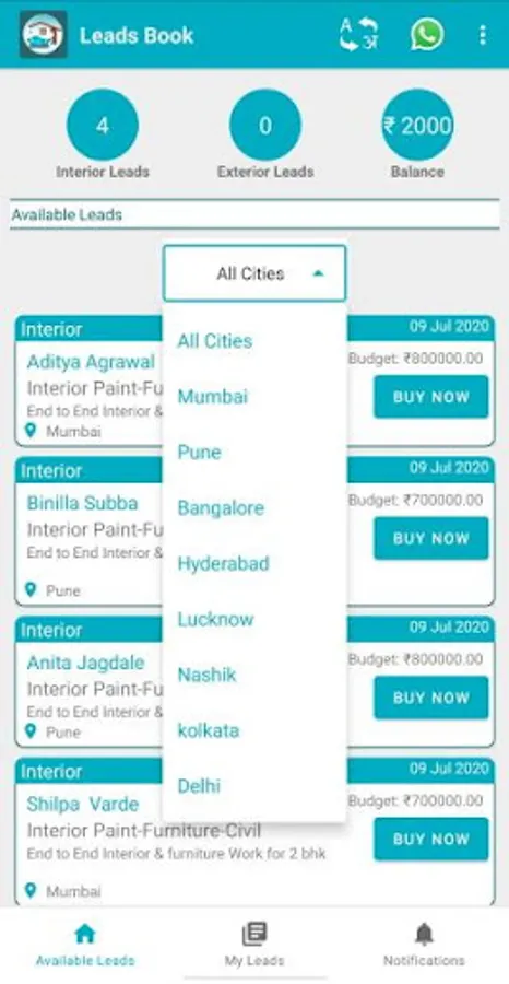 You can secure your work with authentic Leads in one click from anywhere, anytime across India.
