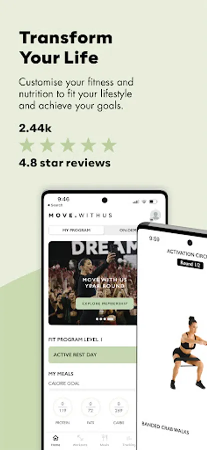 Move With Us is a female health and fitness app that provides you with the most effective home and gym workouts and customised meal guides to help you achieve your fitness goals. Whether you’re looking to lose body fat, build muscle, sculpt and shape, take your pilates to the next level or maintain your current physique - we’ve got something for you.