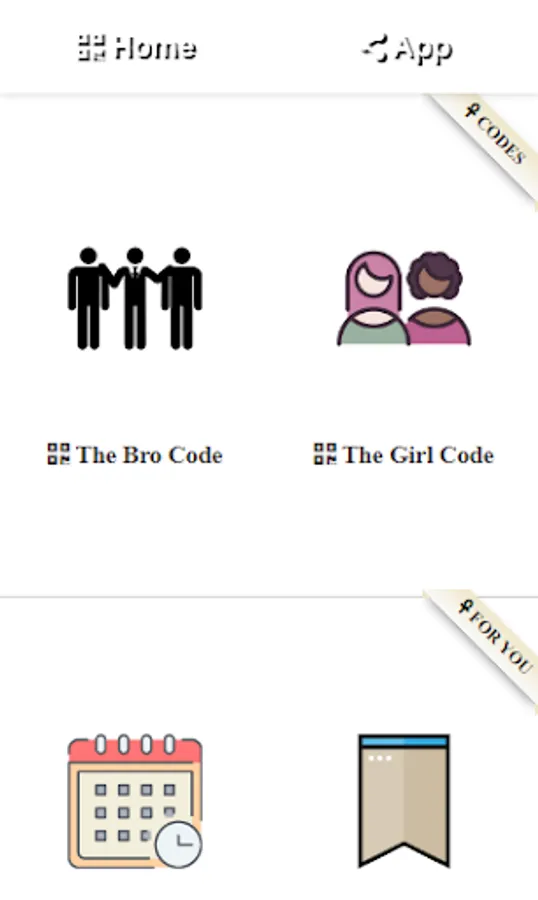 The bro Code and The Girl code app contains unwritten social rules that all guys should follow with their closest friends.The Bro Code provides men and women with all the rules they need to know in order to become a bro or girl and behave properly among other bros and girls .These bro code and girl code rules are a sort of an unspoken Constitution between guys wrapped beautifully in an app .