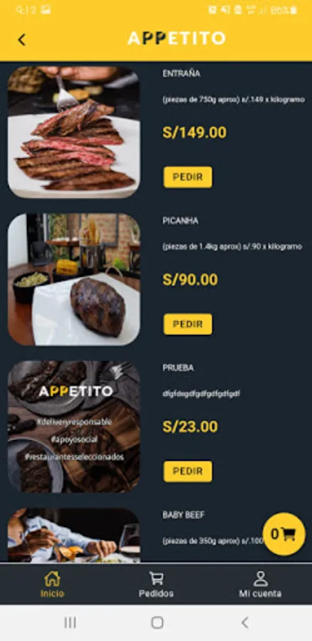Restaurant and market application for taking orders for shipping by delivery or take out.
