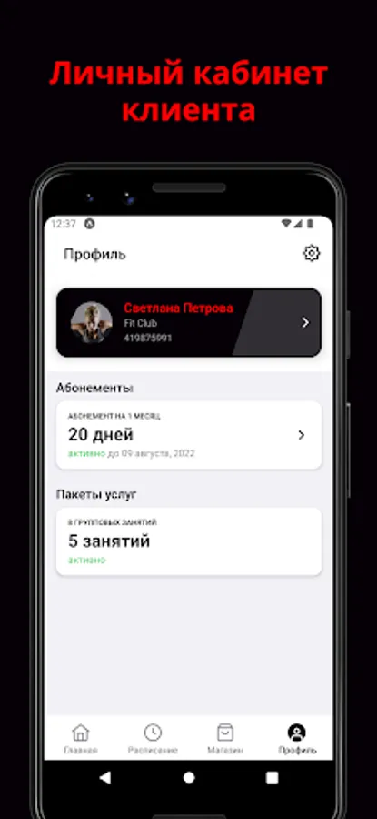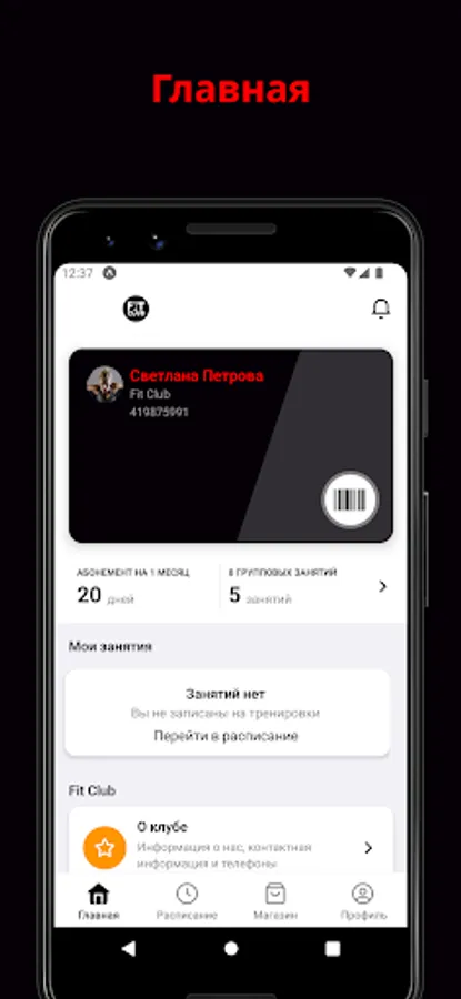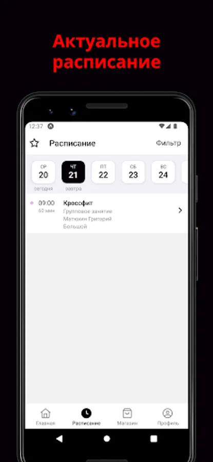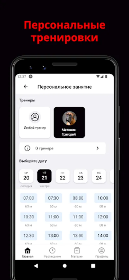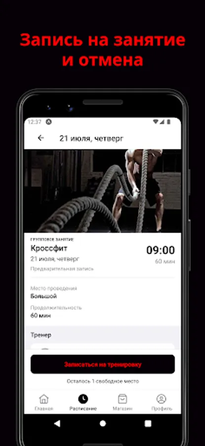In the application, you can sign up for a workout, choose a convenient time for classes, track the rest of the lessons on the subscription.