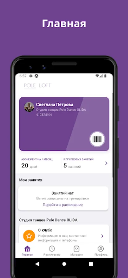 This application will allow you to view the current schedule and independently sign up for classes at the Pole Loft studio, as well as monitor the status of your current subscription, purchase a subscription.